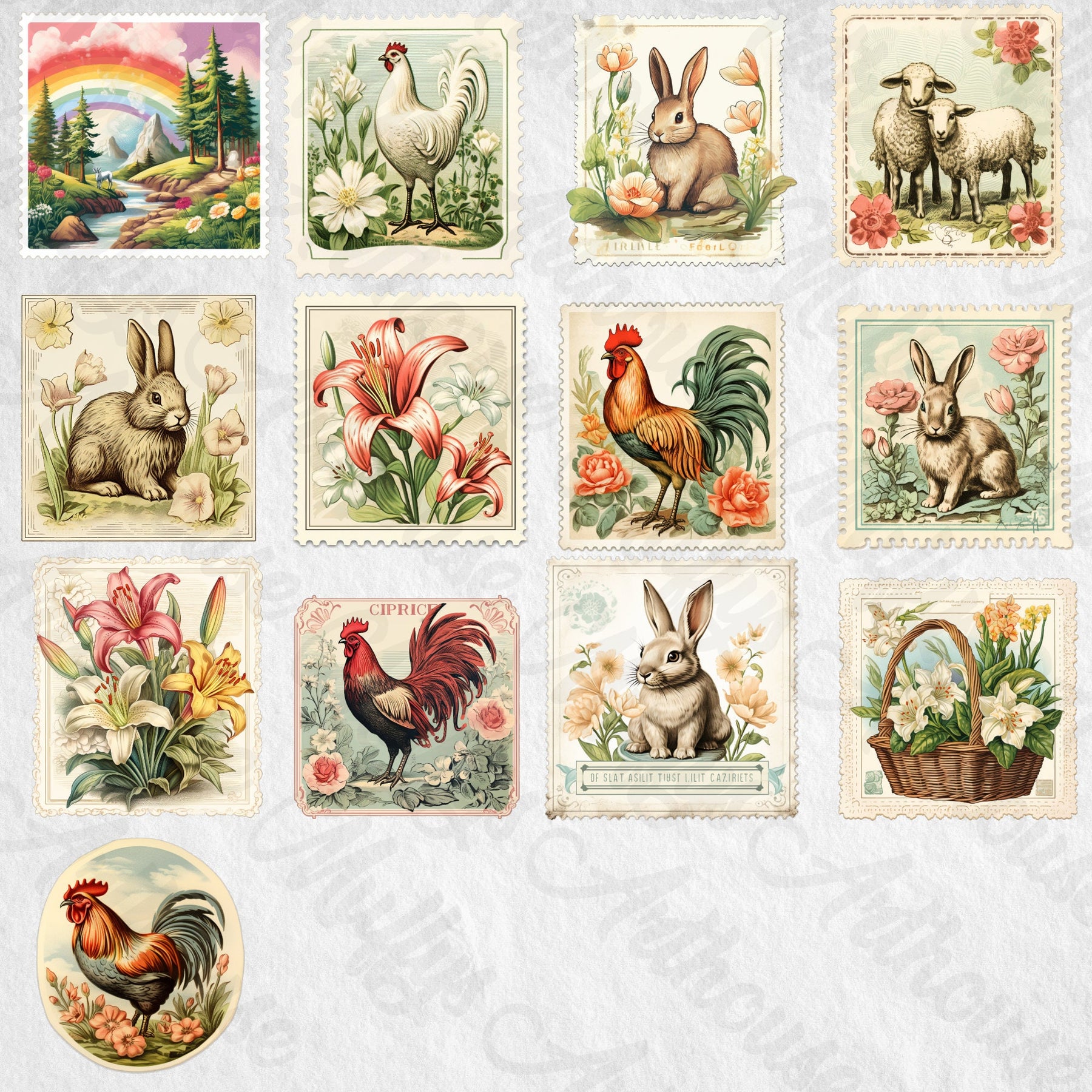 easter vintage stamps cliparts,downloadable easter print,card making,junk journal kit,easter elements,vintage easter figures,printful easter